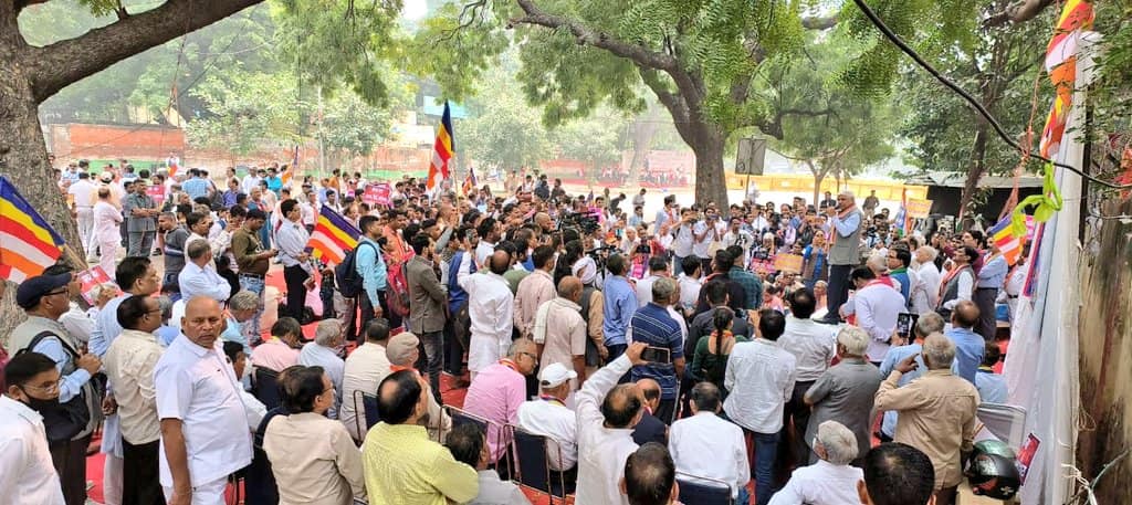 इसी बीच राजेंद्र पाल गौतम ज़िंदाबाद के नारे लगने लगे, तो गौतम जी ने बताया आप वही गलती कर रहे है। हमें विचार को मजबूत करना है व्यक्ति को नहीं । तथा कथित साधु ने जो मेरे सर काटने वाले को 50 लाख इनाम देने की घोषणा की है। उन्हें फंडिंग कौन कर रहा है इसकी जाँच होनी चाहिए। हमने प्रेजिडेंट से लेकर ग्रह मंत्रालय को इस जान से मरने की धमकी की सुचना दी है , मगर अभी तक उनपर कोई कारवाही नहीं हुई है। आप एक राजेंद्र पाल गौतम का सर काटोगे तो 1000 त्यार होंगे। हम इनकी धमकियों से डरने वाले नहीं है। मगर इनकी आय का स्रोत पता चलना चाहिए। ये कैसे किसी को मरने की सुपारी दे सकते है, वो भी वो व्यक्ति जो की साधु का भेष धरना किये हुए है।